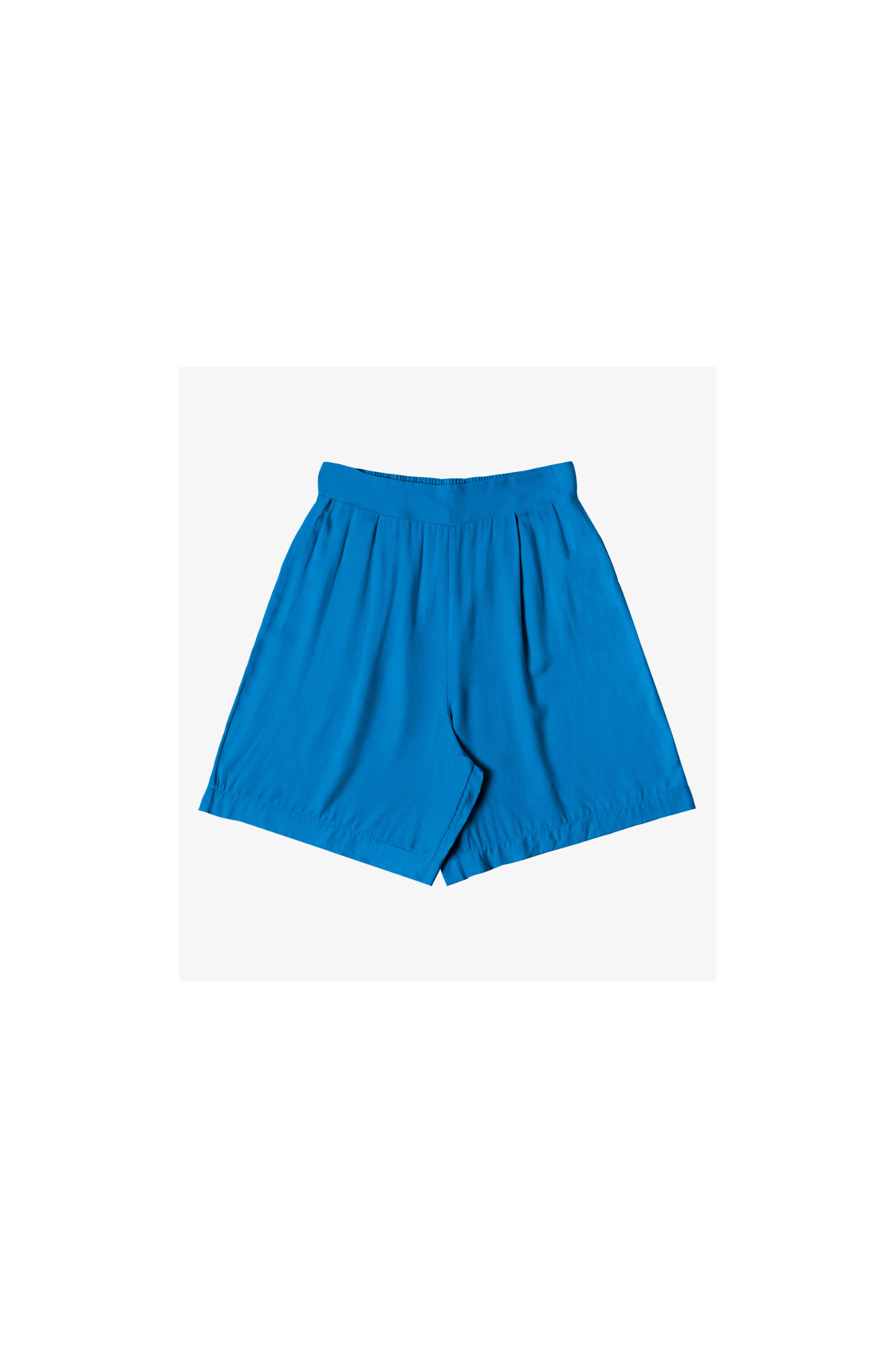 O design conta com cós aplicado, apresentando frente lisa e elástico embutido na parte de trás, que garante ajuste perfeito e conforto durante o uso. As pregas frontais viradas para fora adicionam um toque de charme e movimento ao visual, enquanto o acabamento da barra com bainha reforçada proporciona mais durabilidade e acabamento refinado.