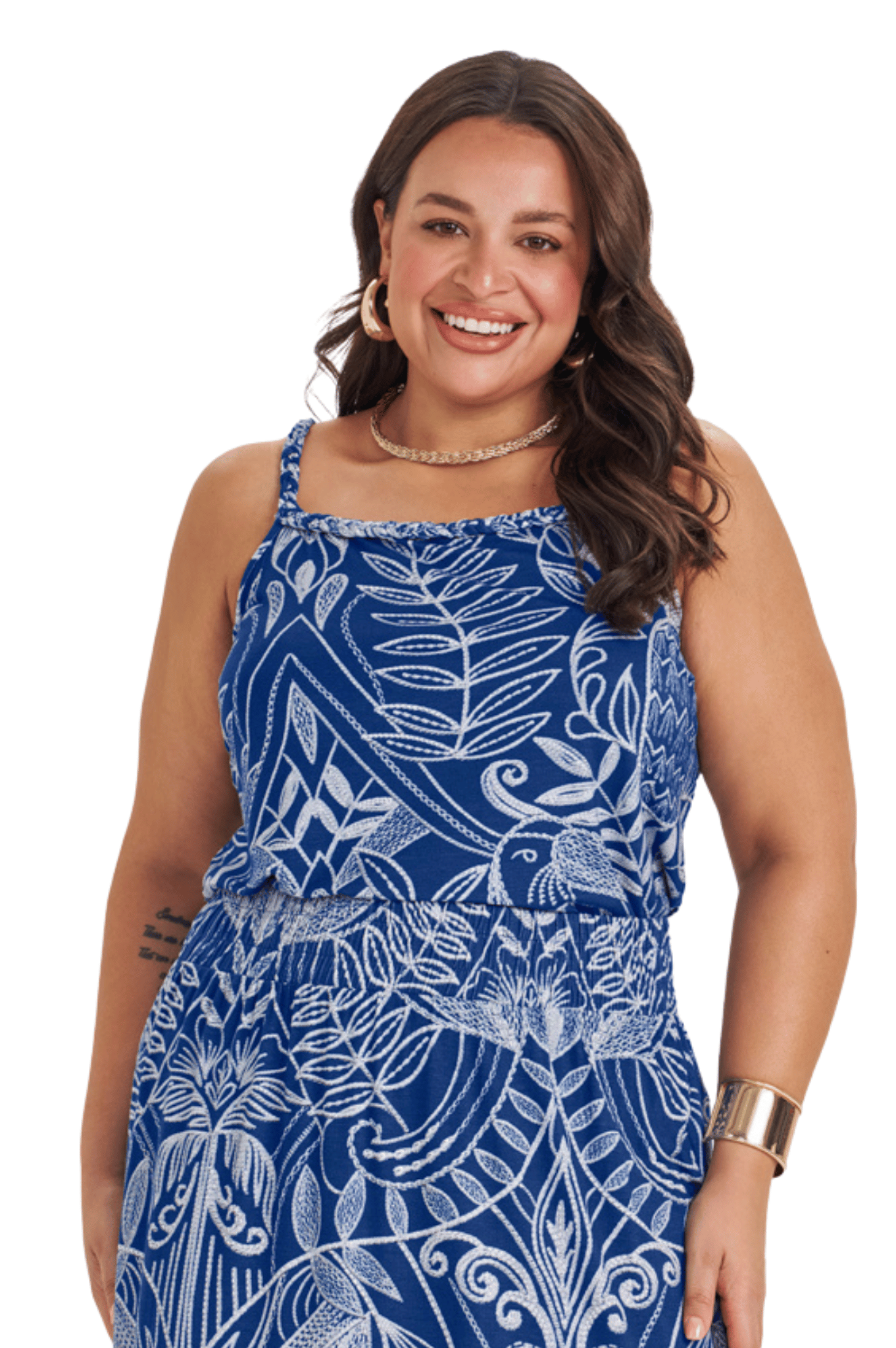 A Blusa de Alça Plus Size Secret Glam foi desenvolvida para oferecer o equilíbrio perfeito entre conforto e elegância. Confeccionada em viscotorcion digital, um tecido leve com toque macio e estampa de alta definição, a peça proporciona um caimento impecável e uma sensação agradável ao vestir.