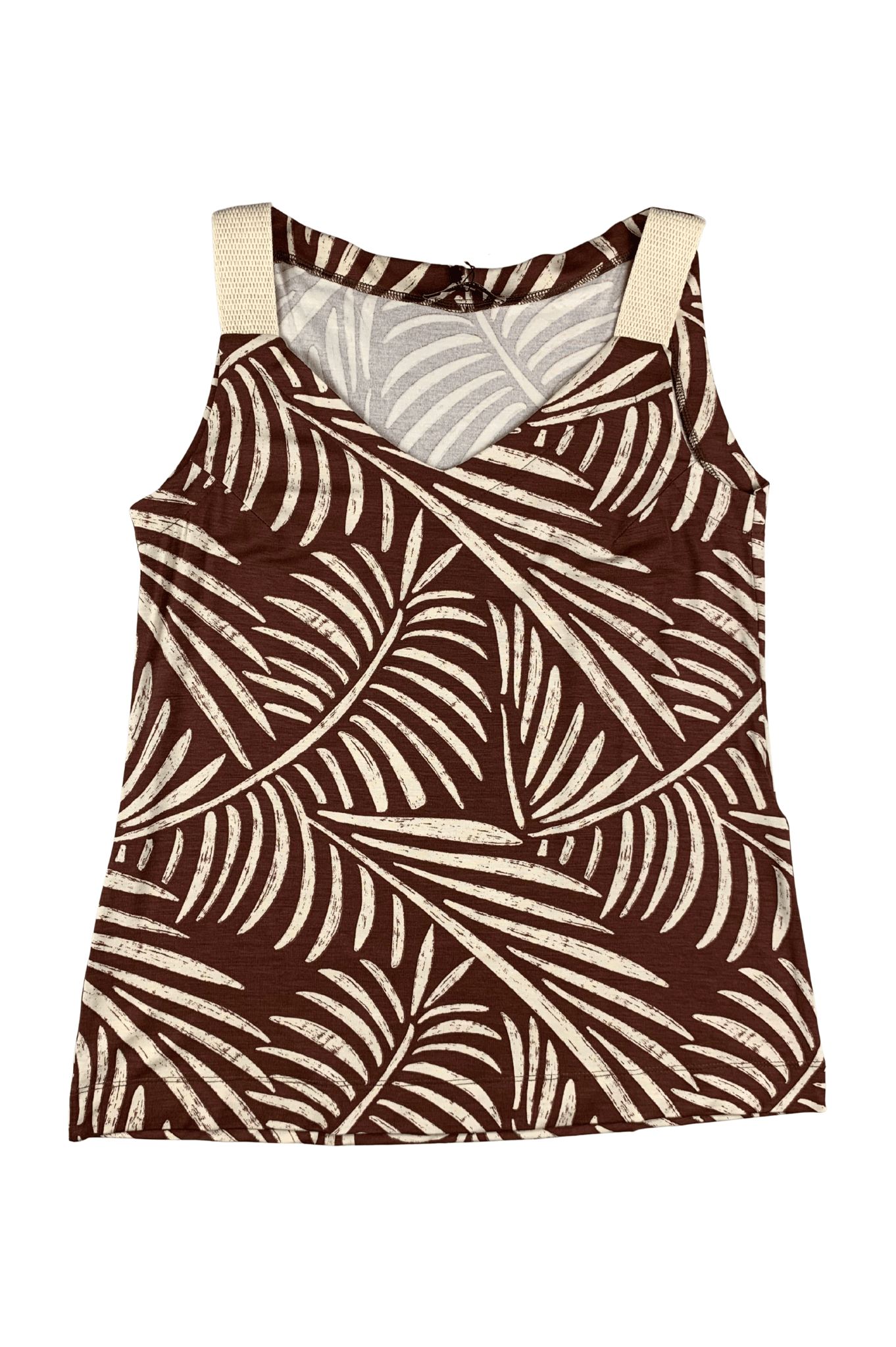 Com modelagem básica (regata) e comprimento ideal, o diferencial desta blusa fica por conta da sua estampa vibrante de folhagens em tons de marrom e off-white e as alças em cadarço (duplas) de cor clara (off-white), que adicionam um toque descontraído e sporty chic. É uma peça versátil, perfeita para ser usada com shorts, saias ou jeans, garantindo um visual leve e cheio de personalidade para os dias mais quentes.