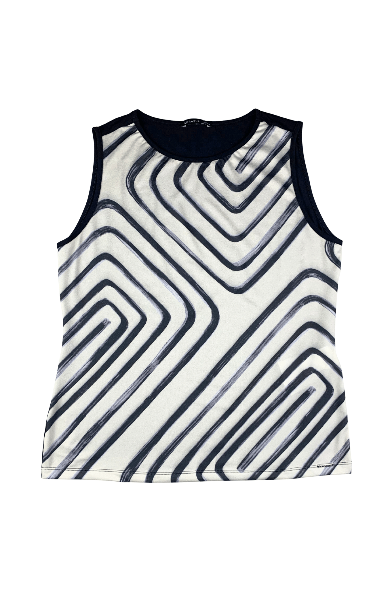 Na cor cinza claro ou bege suave, esta blusa apresenta uma modelagem regata clássica (sem manga) com decote redondo. O tecido com textura crepe confere um visual mais arrumado do que uma regata básica de algodão. Sua versatilidade permite que seja usada como peça principal em looks casuais elegantes ou como base para sobreposições sob blazers e cardigãs.