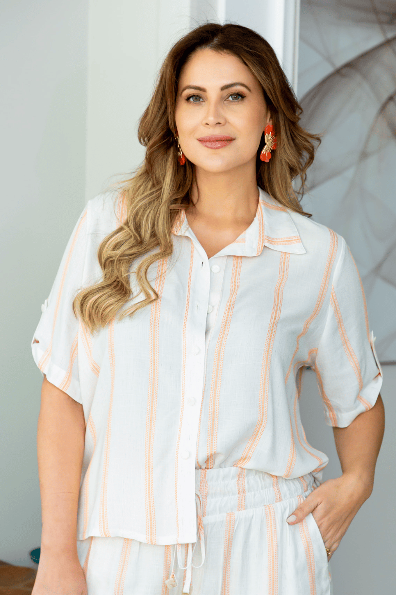 Esta camisa apresenta modelagem clássica com manga curta e gola de colarinho. A combinação da Viscose com o Linho e Modal garante uma peça com excelente fluidez, tornando-a perfeita para os dias quentes. É uma peça versátil, ideal para looks de trabalho em ambientes informais ou para um visual elegante e descontraído no dia a dia.