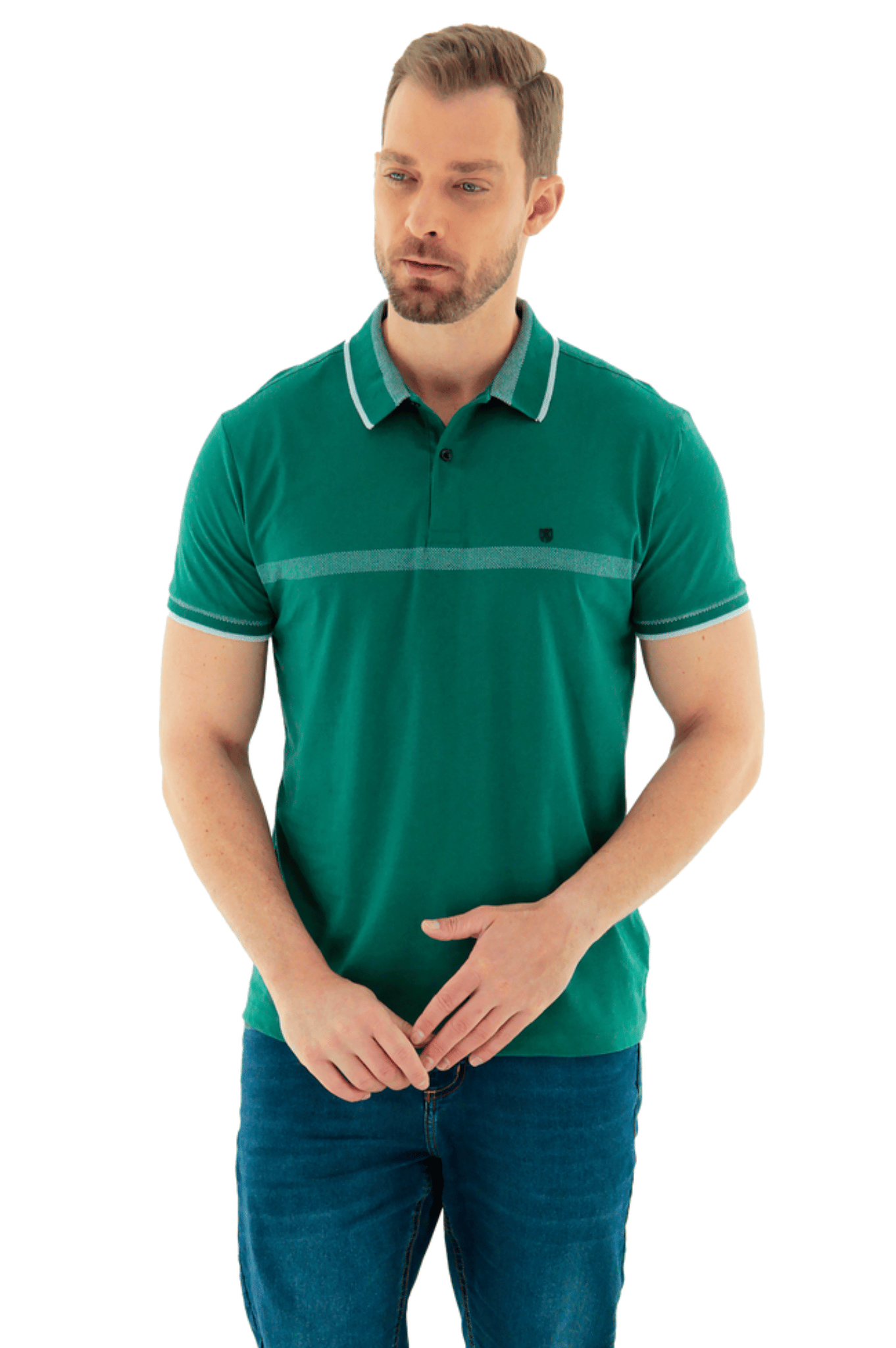No tom suave de Verde Claro, esta polo se destaca pelos seus detalhes em retilínea contrastante na gola e nas mangas. Este acabamento canelado e estruturado adiciona um toque sofisticado e eleva o design básico da peça. Com modelagem clássica e caimento impecável, é extremamente versátil, sendo perfeita para compor looks casuais, para momentos de lazer ou para um visual mais arrumado.