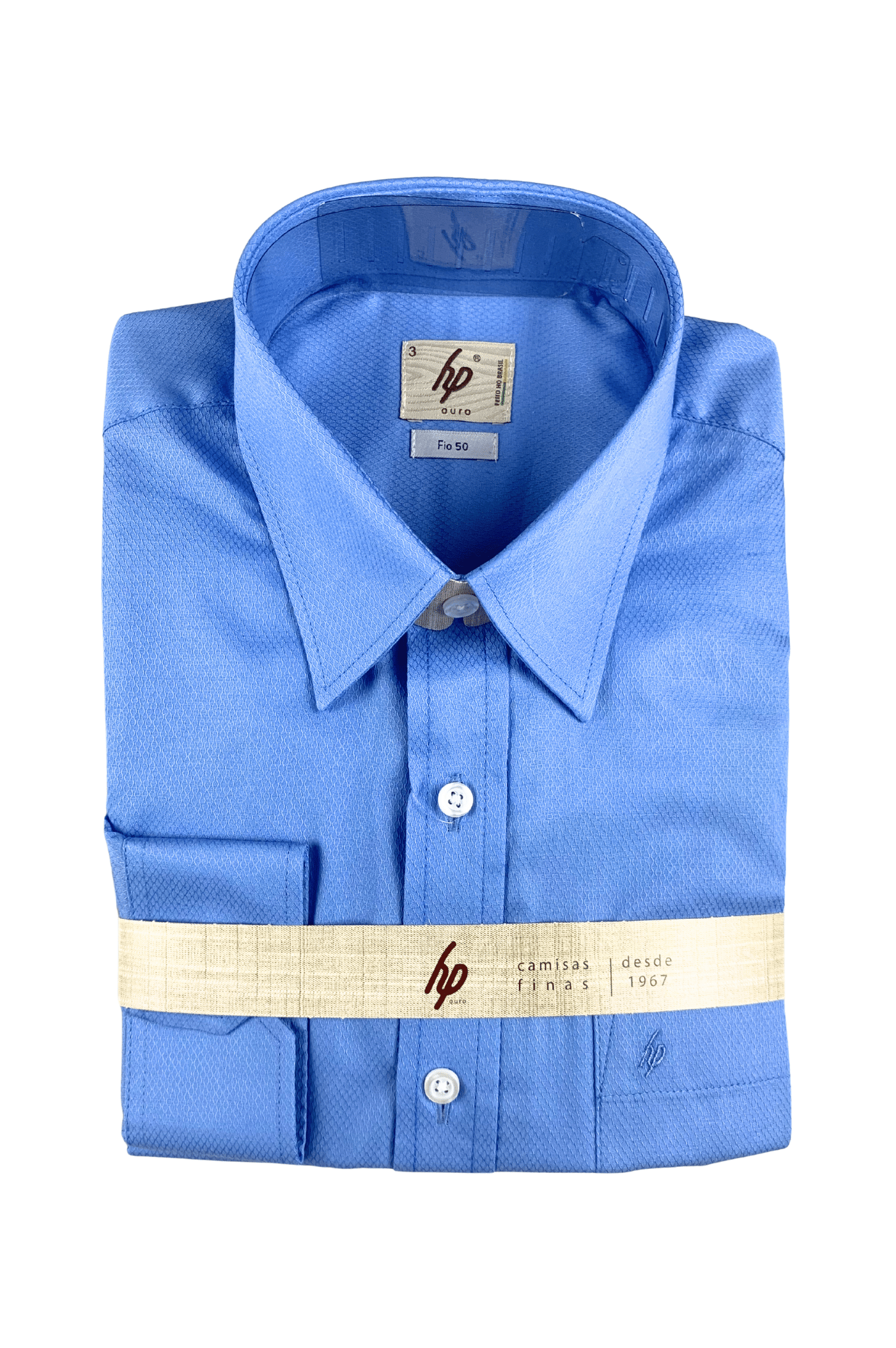 Este produto é o resultado de mão de obra especializada e utiliza tecidos e aviamentos de alta qualidade, sendo integralmente fabricado no Brasil. Na clássica cor azul, a camisa apresenta um tecido com microtextura (aparentemente pinpoint ou oxford leve), que confere um visual refinado e versátil. O design de manga longa com colarinho estruturado é ideal para compor looks formais e de negócios, transmitindo sofisticação e profissionalismo.