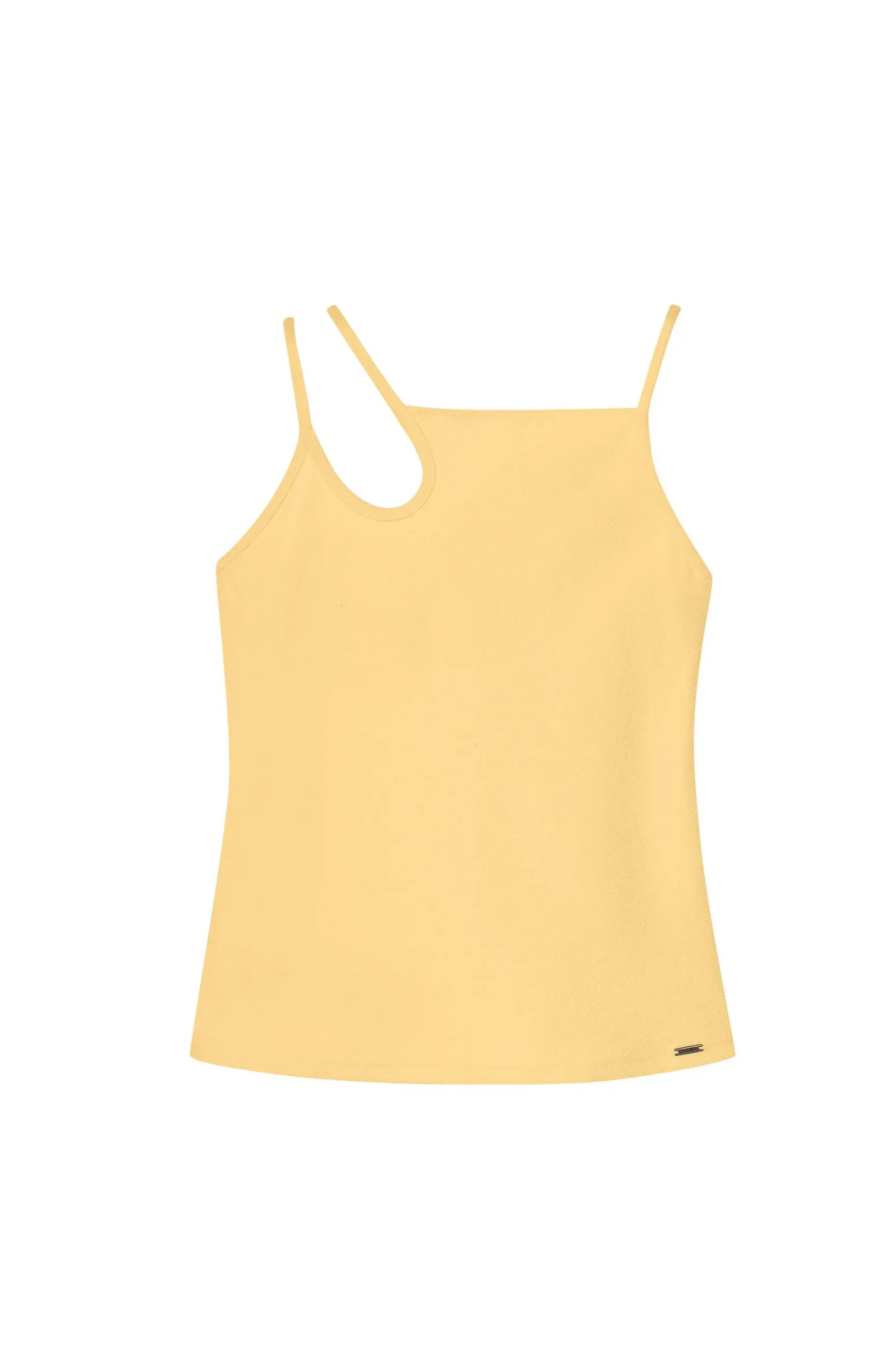 O grande destaque fica por conta do recorte assimétrico no decote, um detalhe contemporâneo que adiciona personalidade e transforma a regata em um item versátil para compor diferentes produções. Ideal para looks casuais, encontros descontraídos ou até combinações mais fashionistas no fim de semana, essa peça é indispensável no guarda-roupa de quem aprecia estilo e autenticidade.
