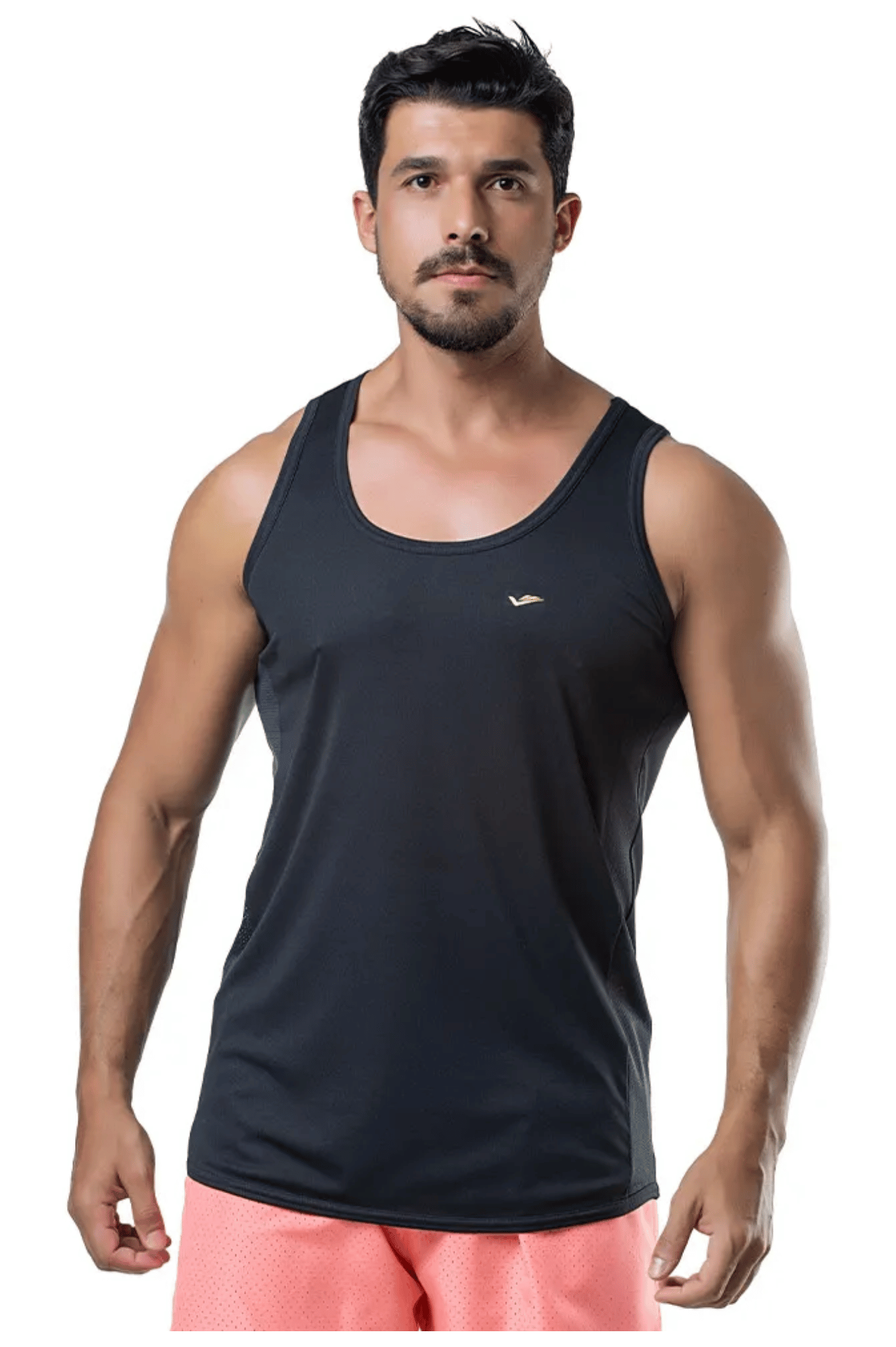Seu design básico e moderno oferece modelagem confortável e excelente caimento, garantindo liberdade total de movimentos. O recorte em tecido perfurado na região das axilas proporciona ventilação extra, contribuindo para uma sensação de frescor e bem-estar prolongado.