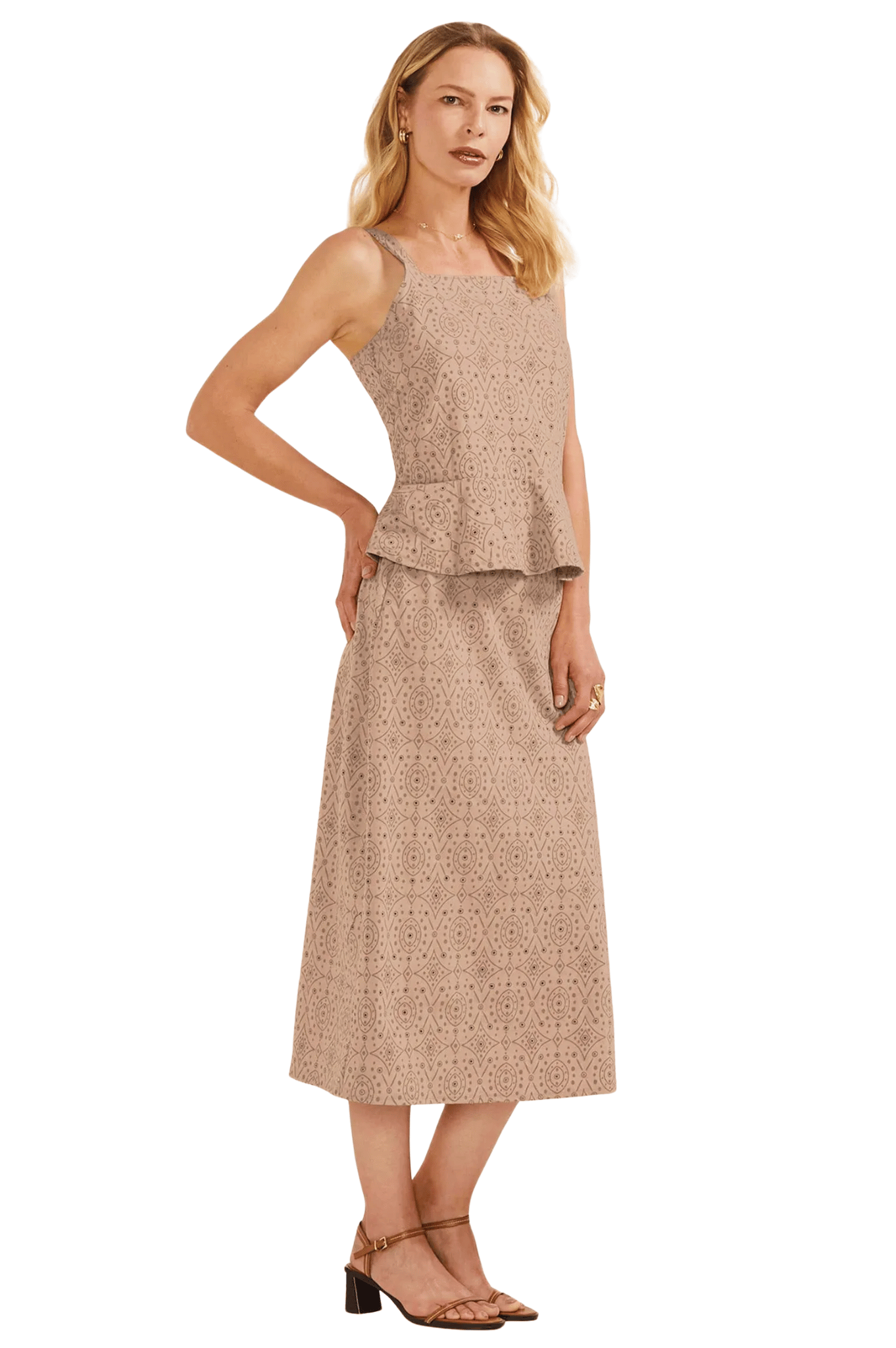 A Saia Midi Feminina Devorê Marialícia é a peça perfeita para quem busca elegância, conforto e versatilidade no dia a dia. Confeccionada em meia malha de algodão devorê, ela apresenta uma padronagem vazada delicada que adiciona charme e sofisticação ao visual. Seu comprimento midi garante um toque moderno, enquanto o elástico no cós proporciona ajuste perfeito e conforto durante o uso.
