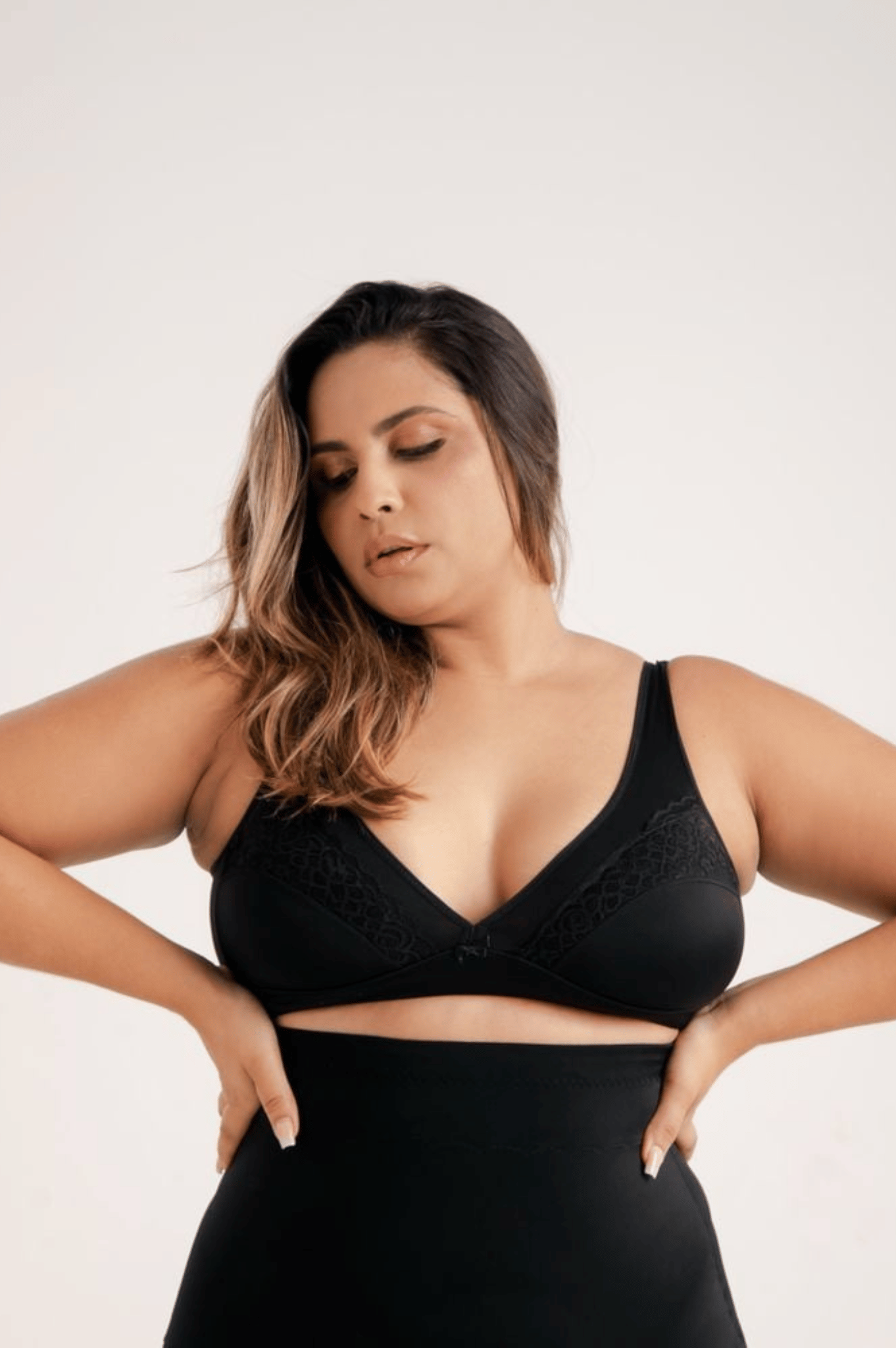 Sutiã de sustentação EXTRA reforçado em tecido de compressão de toque macio com busto de tecido moldado, alças de tecido mais largas e confortáveis com aplicação em renda.