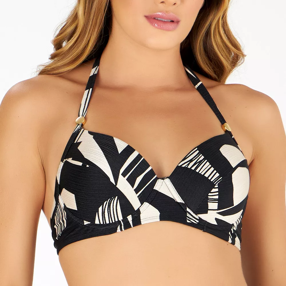 Feito com tecido de secagem rápida e alta durabilidade, o Top com Bojo e Recorte Estampado combina estilo e funcionalidade, sendo a escolha perfeita para quem não abre mão de qualidade e elegância na praia.